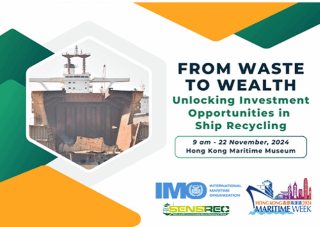 11月17日至23日, 香港海运及港口业界的年度盛事“香港海运周2024”在中国香港特别行政区举行,, 国际海事组织(IMO)安全无害环境拆船(SENSREC)项目吸引了全球银行和投资界精英, 共商航运业现代化与可持续发展战略。
