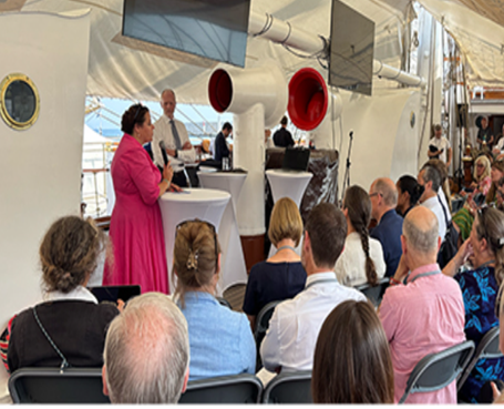 技术专题环节,多位专家进行了相关分享。挪威绿色航运首席谈判代表Sveinung Oftedal概述了法规制定进展;IMO项目实施负责人Gyorgyi Gurban播放了短片《无声入侵者》(Silent Invaders)揭示地中海生物污损现状;卑尔根大学Vigdis Vandvik教授强调了人类在问题成因和解决方案中的双重角色;挪威船级社(DNV)副主席兼海洋空间项目总监Bente Pretlove概述了防污涂料和水下清洁等新兴生物污损控制技术。
